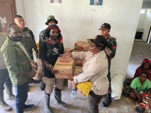 Timika – Babinsa Koramil 1710-05/Jila Praka Calvin mendampingi membagikan bantuan Sembako bagi warga masyarakat yang kurang mampu di Kp. Pasir Putih Distrik Jila, Kab. Mimika, Sabtu (16/11/2024).