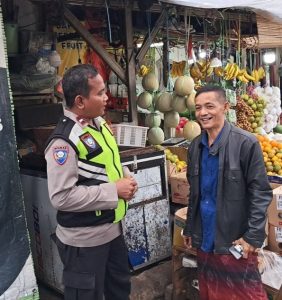 Jakarta Pusat – Bhabinkamtibmas Kelurahan Rawasari Aipda Ronianto memberikan imbauan kamtibmas ke pedagang buah di Pasar Genjing Cempaka Putih Jakarta Pusat. Selasa (18/6/2024)