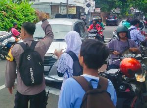 Di depan Sekolah SMPN 40 Aiptu Heri melakukan pengaturan arus lalu lintas agar tidak terjadi kemacetan dan memberikan edukasi kepada siswa/i agar tetap semangat belajar, jangan sampai ikut-ikutan tawuran dan segera pulang ke rumah jangan ikut nongkrong agar tidak menggangu jalanan dan ketertiban umum.