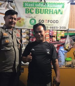 Selanjutnya Briptu Argo Ryantama bertemu dengan warga selaku Pedagang Nasi Uduk untuk memberikan himbauan agar menjaga keamanan dan kamtibmas serta kebersihan di sekitar area tempat berdagang.