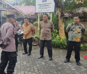 Djoko HP memberikan arahan kepada personil dan petugas security agar tetap waspada dan tetap melayani aksi dengan humanis.