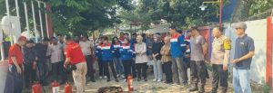 Bekasi Kota- Bhabinkamtibmas dari Polsek Medan Satria, Aipda Madaris, mengikuti kegiatan simulasi dan pelatihan penggunaan alat pemadam api ringan (APAR) serta teknik memadamkan api di Taman Pondok Ungu, Kelurahan Medan Satria, Kota Bekasi.( 06/08/24 )