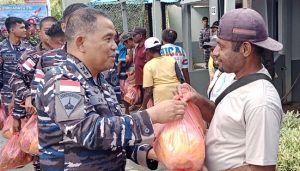 Tidak berhenti pada pembinaan satuan, Dankodaeral X juga menebarkan kasih dan kepedulian bagi masyarakat sekitar. Sebanyak 75 paket sembako diserahkan langsung kepada masyarakat Orang Asli Papua (OAP) di Kampung Samabusa wujud nyata kepedulian TNI AL untuk meringankan beban ekonomi dan mempererat jalinan kebersamaan antara prajurit dan rakyat.
