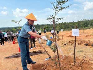 TNI AL, Bintan- Bertempat di Embung DAS Kawal, Toapaya, Bintan, Komandan Lanal Bintan Kolonel Laut (P) Dr. Eko Agus Susanto, S.E., M.M., turut serta dalam Penanaman Pohon Kegiatan Rehabilitasi Lahan di Kabupaten Bintan Tahun 2025 disejalankan dengan Kegiatan Dana Bagi Hasil Sawit, bersama Bupati Bintan, Selasa (22/07/2025).