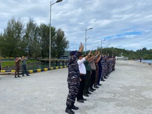 TNI AL, Simeukue- Komandan Pangkalan TNI AL Simeulue Letkol Laut (P) Oyu Mulia Sukmana, S.T., M.T., M.Tr.Opsla., melaksanakan pelepasan KRI Teuku Umar-385 beserta rombongan BI dalam rangka Layanan Kas Keliling Pulau Terluar, bertempat di Pelabuhan Laut Sinabang, Desa Suka Jaya, Kecamatan Simeulue Timur, Kabupaten Simeulue, Rabu (25/09/2024).