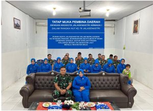 TNI AL, Simeulue- Komandan Pangkalan TNI AL Simeulue Letkol Laut (P) Oyu Mulia Sukmana, S.T., M.T., M.Tr. Opsla., didampingi Ketua Cabang 8 Korcab l DJA I Ny. Meylina Oyu Mulia, melaksanakan Tatap Muka Pangkoarmada I selaku Pembina Daerah dan Ketua Daerah Jalasenastri Koarmada I beserta Jajaran secara Vidio Conference (Vicon), bertempat di Gedung Malahayati Mako Lanal Simeulue, Kecamatan Simeulue Timur, Kabupaten Simeulue, Kamis (15/8/2024).