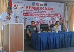 TNI AL, Kepulauan Anambas- Komandan Pangkalan TNI AL Tarempa Letkol Laut (P) Ari Sukamana, S.E., M.Tr. Opsla., menghadiri acara Pembukaan Pemusatan Pendidikan dan Pelatihan Calon Pasukan Pengibar Bendera Pusaka Kabupaten Kepulauan Anambas Tahun 2024, bertempat di Aula Gedung Tarempa Beach, Kecamatan Siantan, Kabupaten Kepulauan Anambas, Rabu (31/07/2024).