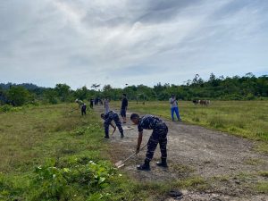 TNI AL, Simeulue, 25 Oktober 2024- Prajurit Lanal Simeulue melaksanakan kegiatan gotong royong dan pembersihan lapangan sepak bola serta tribun dalam rangka persiapan Hari Sumpah Pemuda di Lapangan Sepak Bola Simeulue, Desa Suak Buluh, Kecamatan Simeulue Timur, Kabupaten Simeulue, yanh dilaksanakan selama dua hari 24-25 Oktober 2024.
