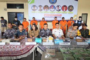 TNI AL, Belawan- Komandan Pangkalan Utama TNI Angkatan Laut I (Danlantamal I) Brigjen TNI (Mar) Jasiman Purba, S.E., CHRMP., diwakili Wadan Lantamal I Kolonel Laut (P) Siswo Widodo, S.T., ikut serta dalam pemusnahan barang bukti narkotika dari hasil tangkapan periode Juli hingga Agustus 2024, bertempat di Kantor BNN Provinsi Sumatera Utara, Jalan Willem Iskandar Pasar V barat I No.1A Medan, Sumatera Utara, Jumat (13/9/2024).