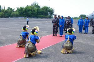 Makassar – Danlanud Sultan Hasanudin Marsma TNI Bonang Bayuaji G, S.E., M.M., CHRMP., didampingi Ketua PIA Ardhya Garini Cabang 7/D.II Lanud Sultan Hasanuddin Ny. Liska Bonang Bayuaji menyambut kedatangan Kepala Staf Angkatan Laut (Kasal) Laksamana TNI Dr. Muhammad Ali, S.E., M.M., M.Tr.Opsla., beserta Ketua Umum Jalasenastri Ny. Fera Muhammad Ali dan Rombongan saat melaksanakan kunjungan kerja di Makassar, bertempat di Apron Baseops Lanud Sultan Hasanuddin, Makassar, Provinsi Sulawesi Selatan, Jumat (9/8/2024).