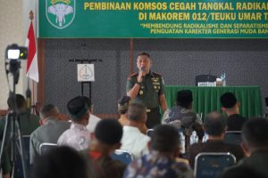 Meulaboh – Korem 012/Teuku Umar menggelar Komunikasi Sosial (Komsos) bertema “Membendung Radikalisme dan Separatisme Melalui Penguatan Karakter Generasi Muda Bangsa” di Aula Bhakti Gara Makorem, Rabu (20/11/2024). Kegiatan ini bertujuan mempererat silaturahmi antara masyarakat dengan TNI AD, khususnya Korem 012/TU, sekaligus mendukung tugas pokok sebagai Satuan Komando Kewilayahan (Satkowil).