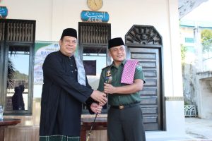 Kedatangan orang nomor satu di TNI wilayah Barat-Selatan Aceh ini disambut hangat pimpinan Ponpes setempat Tgk H Farmadi ZA MSc.