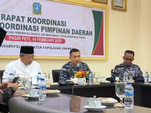 TNI AL, Kepulauan Anambas- Bertempat di Ruang Media Center Kantor Bupati Kabupaten Kepulauan Anambas, Komandan Pangkalan TNI Angkatan Laut Tarempa Letkol Laut (P) Ari Sukmana, S.E., M.Tr.Opsla., menghadiri Rapat Kordinasi Forkopimda (Forum Komunikasi Pimpinan Daerah) Tahun 2025 yang dipimpin oleh Bupati Kepulauan Anambas dengan tema “Membangun Sinergi Antara Pemerintah, Swasta dan Masyarakat Dalam Menghadapi Krisis” di wilayah Kabupaten Kepulauan Anambas, Jumat (14/2/2025).