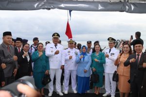TNI AL, Nias- Pangkalan TNI AL Nias mendukung kegiatan Upacara Tabur Bunga dilaksanakan diatas KAL Hinako I-2-19 di Perairan Lahewa yang dilaksanakan oleh Pemkab Nias Utara, dan bertindak sebagai Inspektur Upacara Bupati Kabupaten Nias Utara Amizaro Waruwu, Jumat (16/8/2024).
