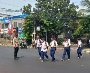 Jakarta Pusat – Kapolsubsektor Kayu Awet Aiptu I Ketut Alit Susila, melaksanakan patroli dialogis dalam rangka monitoring bubaran pelajar pulang sekolah di Jalan Percetakan Negara Raya, Kelurahan Johar Baru, Kecamatan Johar Baru Jakarta Pusat. Rabu (24/7/2024).