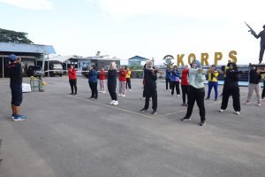 TNI AL, Belawan- Ketua Korcab I DJA I Ny. Othy Jasiman Purba, bersama Pengurus dan Anggota melaksanakan olahraga bersama, bertempat di Lapangan Apel Mako Yonmarhanlan l, Jalan Serma Hanafiah No. 01 Belawan, Sumatera Utara, Selasa (02/7/2024).