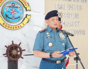 TNI AL, Belawan- Komandan Komando Daerah Angkatan Laut I (Dankodaeral I) Laksamana Muda TNI Deny Septiana S.I.P., M.A.P., memimpin acara Pelaporan Korps Kenaikan Pangkat Perwira Kodaeral I, bertempat di Lobby Mako Kodaeral I, Belawan, Sumatera Utara, Senin (13/10/2025).