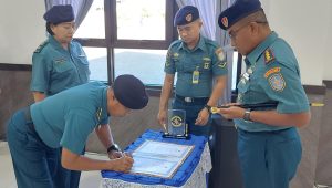 TNI AL, Makassar- Komandan Satlinlamil 3 Kolonel Laut (P) Nur Rochmad Ibrohim, S.T., M.Tr. Hanla., pimpin acara Serah Terima Jabatan (Sertijab) Kepala Akuntansi Satlinlamil 3 dari Mayor Laut (S) Jawawi kepada Mayor Laut (S/W) Meryani Lolok, bertempat di Rupat Mako Satlinlamil 3, Rabu (31/7/2024).