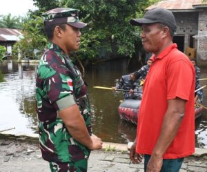 Disela-sela meninjau warga terkena banjir, Danlanal TBA Letkol Laut (P) Wido Dwi Nugraha, S.E., M.Tr. Opsla., mengatakan bahwa kami Prajurit Lanal TBA berusaha membantu dan mengevakuasi warga yang tertahan atau terjebak dari banjir akibat curah hujan tinggi beberapa hari terakhir dengan menggunakan perahu karet door to door kesetiap rumah warga.
