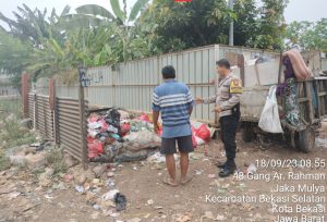 Opsinews.id-Bekasi Kota-Bhabinkamtibmas kel Jakamulya Kec. Bekasi Selatan dalam rangka Monitoring Lokasi Pembuangan Sampah Sementara Di Wilayah Hukum Polsek Bekasi Selatan oleh Bripka Sudirman bertempat di Gang Ar rahman RT. 05/02 kelurahan jakamulya.Senin(18/09/23).