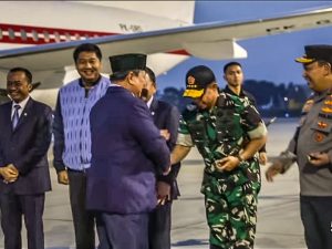 (Puspen TNI)Panglima TNI Jenderal TNI Agus Subiyanto menyambut kedatangan Presiden RI Prabowo Subianto yang telah selesai melaksanakan agenda kunjungan kerja ke Luar Negeri, bertempat di Baseops Lanud Halim Perdanakusuma, Jakarta Timur, Minggu (24/11/2024).