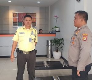 Jakarta Pusat – Panit Sabhara Polsek Cempaka Putih Bripka Suroto menyampaikan imbauan ke security Bank BRI Unit Rawasari Jalan Rawasari Selatan Cempaka Putih Jakarta Pusat. Jumat (5/7/2024)