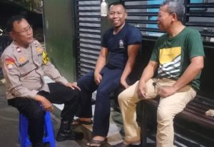 Patroli Dialogis Aiptu Sunarto selaku Bhabinkamtibmas melakukan interaksi dan komunikasi dengan Imron selaku petugas keamanan wilayah dan warga RW 01 untuk menyampaikan dengan kehadirannya di tengah masyarakat dalam rangka saling tukar informasi dan memberikan imbauan agar deteksi dini gangguan kamtibmas.