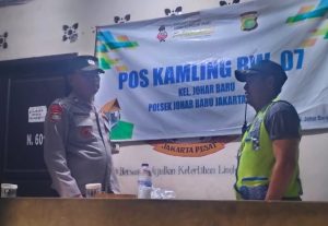 Patroli Dialogis Aiptu Sunarto selaku Bhabinkamtibmas Kelurahan Johar Baru sambang ke Pos Kamling RW 07 Johar Baru dan bertemu dengan Agus selaku petugas Satkamling untuk menyampaikan pesan dari Kapolres Metro Jakarta Pusat Kombes Pol Susatyo Purnomo Condro, S.H., S.I.K., M.Si., melalui Kapolsek Johar Baru Kompol Ubaidillah, S.H., M.A., agar Bhabinkamtibmas mengajak petugas Satkamling bersama-sama untuk menjaga keamanan dan ketertiban di lingkungannya supaya tetap kondusif.