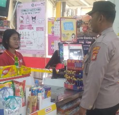 Patroli Dialogis Aiptu Zulfikar Hasibuan ke minimarket Indomaret untuk memberikan imbauan kamtibmas kepada Anita selaku karyawan Alfamart.