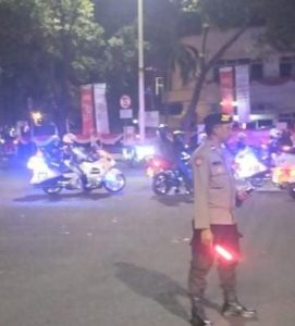 Aipda Dion selaku petugas Patmor melaksanakan patroli dan strong point di sepanjang Jalan Imam Bonjol menuju Diponegoro untuk memberikan rasa aman dan nyaman kepada masyarakat.