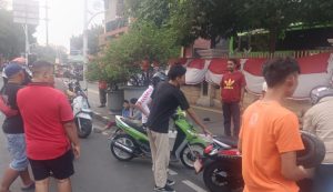 Jakarta Pusat – Patroli Personil Polsek Metro Menteng kepada Suporter Persija yang melintas depan Stasiun Cikini Menteng Jakarta Pusat.