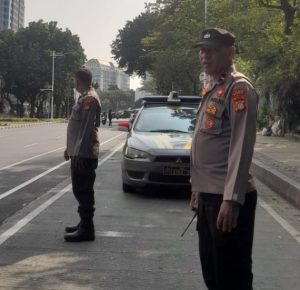 Jakarta Pusat – Unit Samapta Patroli 1011 Polsek Metro Gambir Aipda Wayan dan Bripka Rudi melaksanakan patroli dan sambang wilayah Jl. Merdeka Selatan, Gambir, Jakarta Pusat. Minggu (11/08/2024)