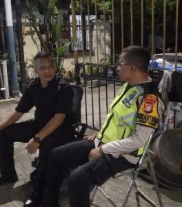 Jakarta Pusat – Bhabinkamtibmas Kelurahan Cempaka Putih Timur Aipda Wisnu Saputra melaksanakan patroli malam hari sekaligus singgah dan memberikan imbauan kepada petugas keamanan lingkungan di Jalan Cempaka Putih Tengah I Cempaka Putih Jakarta Pusat. Jumat (26/7/2014)