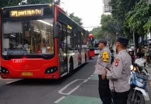 Personil Polsek Senen Berikan Pengamanan Pengaturan Lalu Lintas