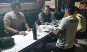 Jakarta Pusat – Aipda Alfian selaku petugas patroli melaksanakan patroli dini hari dan sambangi petugas security di Pasar Blok F Tanah Abang Kelurahan Kampung Bali Kecamatan Tanah Abang Jakarta Pusat. Selasa (30/07/2024).