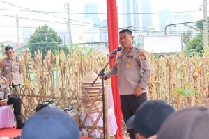 Jakarta – Kapolda Metro Jaya Irjen Pol. Karyoto Melaksanakan Panen Jagung di Lahan Ketahanan Pangan Polsek Metro Tanah Abang Bantaran Kali Ciliwung di Bantaran Kali Ciliwung Jl. Tenaga Listrik Rw. 016 Kel. Kebon Melati Kec. Tanah Abang Jakarta Pusat , Kamis (17/04/2025). Program ini merupakan bagian dari upaya urban farming di wilayah perkotaan.