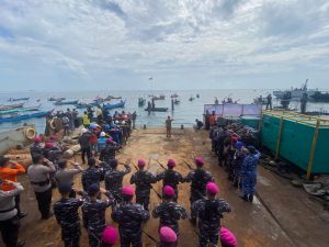 TNI AL, Bintan- Prajurit Lanal Bintan turut serta mengikuti Pengibaran Bendera Merah Putih dalam rangka Peringatan HUT Kemerdekaan RI Ke-79 Tahun 2024 di Perairan Karang Singa, Sabtu (17/08/2024).