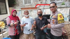 Selanjutnya Aipda Ikhwan Mulyadi saat melaksanakan sambang dialogis melakukan monitoring kegiatan pembagian KLJ dan KPDJ oleh Ria staf PJLP sosial kelurahan Kampung Rawa dan Amy PSM Dinas Sosial.