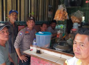 Jakarta Pusat _ Sambang Wilayah Bhabinkamtibmas Kelurahan Galur Aiptu Baktiar Emri Berikan Imbauan Kamtibmas kepada Warga di Warkop jalan Galur Jaya RT 08 RW 04 Kelurahan Galur, Kecamatan Johar Baru Jakarta Pusat. Kamis (4/7/2024).