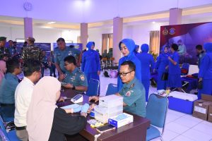 TNI AL, Banjarmasin- Komandan Lanal Banjarmasin Kolonel Laut (P) Didik Kusyanto, M.Tr.Hanla., didampingi Ketua Cabang 4 Korcab XIII Daerah Jalasenastri Armada II Ny. Derry Didik Kusyanto, membuka kegiatan bakti sosial donor darah yang merupakan kerjasama Lanal Banjarmasin dengan Palang Merah Indonesia (PMI) Cabang Banjarmasin yang dilaksanakan di Gedung Musthafa Ideham, Mako Lanal Banjarmasin, Provinsi Kalimantan Selatan, Jum’at (06/09/2024).