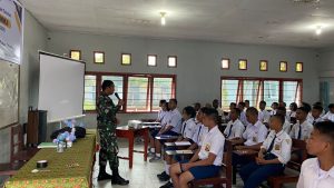 Timika – Babinsa Koramil 1710-02/Timika, Sertu Tumpak Marpaung memberikan materi tentang PBB dan Kepemimpinan kepada siswa siswi baru SMA Taruna, Sabtu (29/06/2024). Kegiatan tersebut dilaksanakan di SMA Taruna, Kel. Kamoro Jaya, Distrik Mimika Baru, Kabupaten Mimika yang diikuti oleh sekitar 50 orang siswa siswi baru.