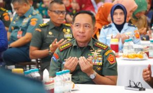(Puspen TNI)Panglima TNI Jenderal TNI Agus Subiyanto didampingi Ketua Umum Dharma Pertiwi Ny. Evi Agus Subiyanto memberikan santunan anak yatim dan dhuafa dalam acara syukuran Hari Ulang Tahun Panglima TNI Ke-57, bertempat di Wisma A. Yani, Jakarta Pusat, Rabu (7/8/2024).