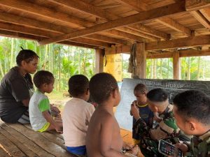 Boven Digoel – Satgas Pamtas Yonif 126/Kala Cakti melaksanakan program pengajaran dasar baca, tulis, dan hitung (Calistung) bagi anak-anak di Kampung Wametkapa guna mempermudah akses pendidikan dasar sekaligus program pemerataan pendidikan di wilayah perbatasan, Kamis (4/9/2025).