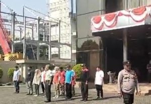 Dalam pelaksanakan Aipda Anwar melatih para karyawan dan sekuriti untuk upacara pengibaran Bendera Merah Putih yang akan dilaksanakan pada tanggal 17 Agustus nanti.