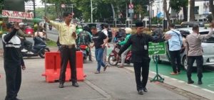 Bambang dan Pamdal selain melakukan pengaturan kendaraan masyarakat yang akan melaksanakan Sholat juga memberikan pengamanan dan juga menghimbau kepada masyarakat agar jangan sampai kunci kendaraan tertinggal dan selalu menjaga barang barangnya.