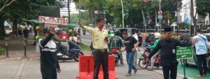 Jakarta Pusat – Anggota Binmas Polsek Sawah Besar Bripka Bambang, bersama dengan Pamdal (Petugas Pengamanan Masjid) dan pengurus Masjid Istiqlal melakukan pengaturan dan mengarahkan termasuk yang menggunakan kendaraan kepada masyarakat yang akan melaksanakan Sholat Jum’at ke Masjid Istiqlal Sawah Besar Jakarta Pusat. Jum’at (05/7/2024)