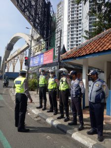 – Memberikan teguran yang tidak pakai helm 5 Orang.