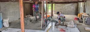 Timika – Anggota Kodim 1710/Mimika dipimpin Pelda Edy Mangende dengan penuh semangat melaksanakan kegiatan pembenahan pangkalan pembangunan Ruang Makan Staf Makodim 1710/Mimika, Jl Agimuga, Mile 32, Distrik Kuala Kencana, Kab. Mimika, Senin (22/07/2024).